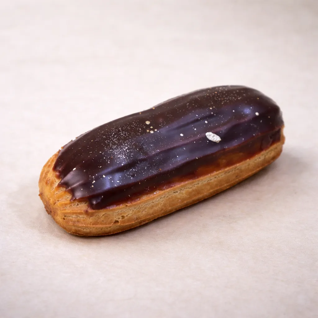 Prăjitură din aluat opărit, cremă de lapte și ciocolată neagră.