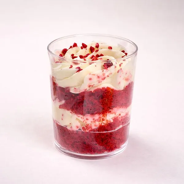 Desert pe bază de blat pufos din unt 82,5% , cremă de brânză și frișcă naturală 36%, insert de zmeură, zmeură liofilizată.