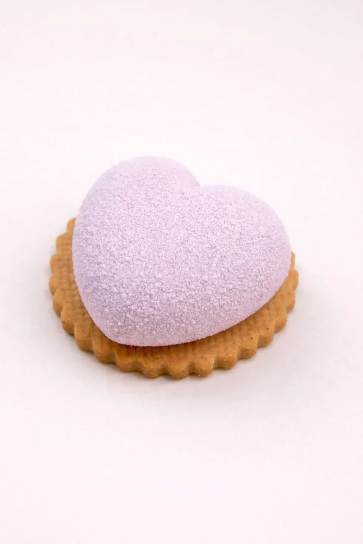 Мусс из сливок 33%, пюре из малины, белого шоколада и хрустящего печенья.